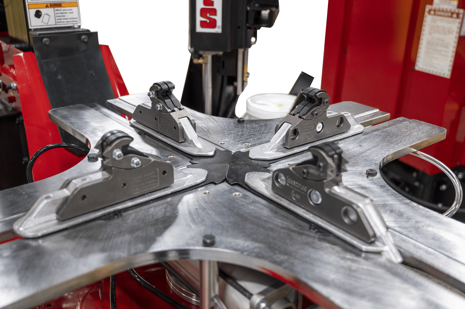 Large clamping capacity to externally clamp wheels up to 30″ or as small as 9″ in diameter to maximize service flexibility, without special adapters.